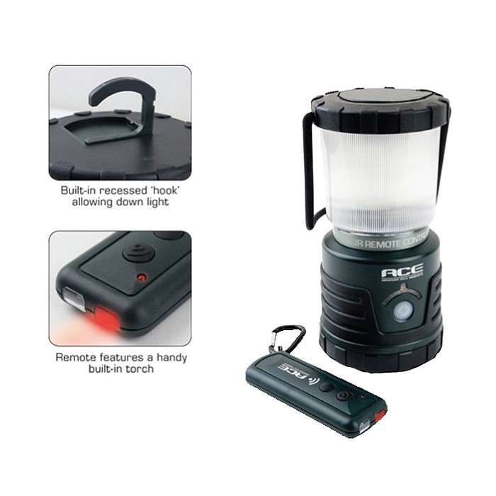 The ACE Lumin-8 Remote Control Bivvy Lamp is the perfect carp fishing all-round torch and lantern. Offering a staggering 300 lumens of light, it has three different brightness settings which can be adjusted manually or via the compact remote control. The remote is easy to use and even features a handy built-in torch. Theres a built-in hook to allow the lamp to be hung from your bivvy frame or tree. The lamp runs off three D batteries and has two 2W Nichia LEDs that not only provide superb illumination, but also help extend the battery life too.