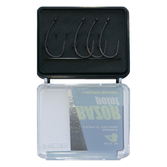 Ace Razor Point Short Curve Shank Hooks, The most popular of ACEs Carp Razorpoint hook patterns, not just because its robust, ultra-sharp and incredibly strong its the most versatile. Having both a short shank and a slight bend, this straight point carp hook also has a straight eye which ensures it can be used to create a wealth of presentations. Whether you simply wish to gain a better hook hold when fishing standard hair-rigged bottom or pop-up boilies, or you want to give the Withy Pool rig, a snowman presentation or a KD rig a try, this is the perfect hook pattern to use. Its available in micro barbed sizes 1, 2, 4, 5, 6, 7, 8 and 10, and Barbless sizes 6, 8, 10. ACE Razor Point Hook Range: The ACE Razorpoint range of carp fishing hooks has been designed from scratch specifically to create the perfect hook pattern for the optimum rig and situation you are facing. Unlike many carp fishing hooks that are simply repackaged examples from hook manufacturers, these carp hooks have been created using experience and vast knowledge from our team of consultants: Terry Hearn, Iain Macmillan and Max Cottis, and many more. Refined to minute details to ensure perfect performance with every cast, ACE and our team of hardened carp angling experts truly believes our range of carp hooks is the most advanced on the market something we are extremely proud of. Technical Info: Dura-Point Technology - Produces one of the sharpest and longest points in the carp hook world, even after multiple uses. Japanese Carbon Steel The highest quality steel available for producing carp hooks, providing strength, durability and reliability. Non-Glare PTFE Finish Special coating ensures each hook blends-in with the venue bottom therefore minimising spooking of fish. Closed Eye Careful attention to detail means each hook eye is perfectly created so no damage will occur to your hooklink. Micro Barb Tiny barbs ensure minimum damage upon entry coupled with an extraordinary hook hold during the fight.