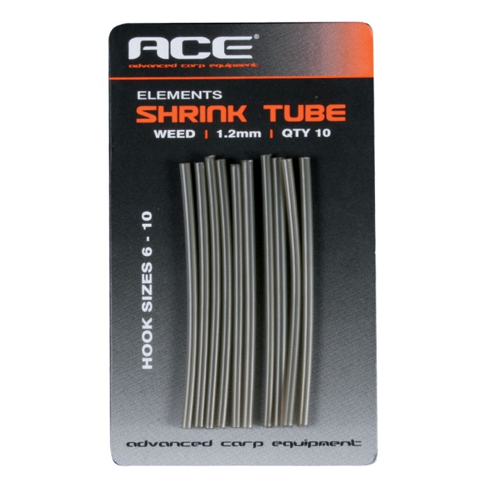 Ace Shrink Tube, Specially developed for ACE to provide superb memory, this 3:1 ratio shrink tube allows you to create extensions to the hook significantly improving the hooking efficiency by helping turn the hook into the mouth increasing its chances of achieving a good hook hold. Available in two sizes in Silt, Gravel and Weed to blend in with our range of hooklink materials or Clear for those who love fluorocarbon!