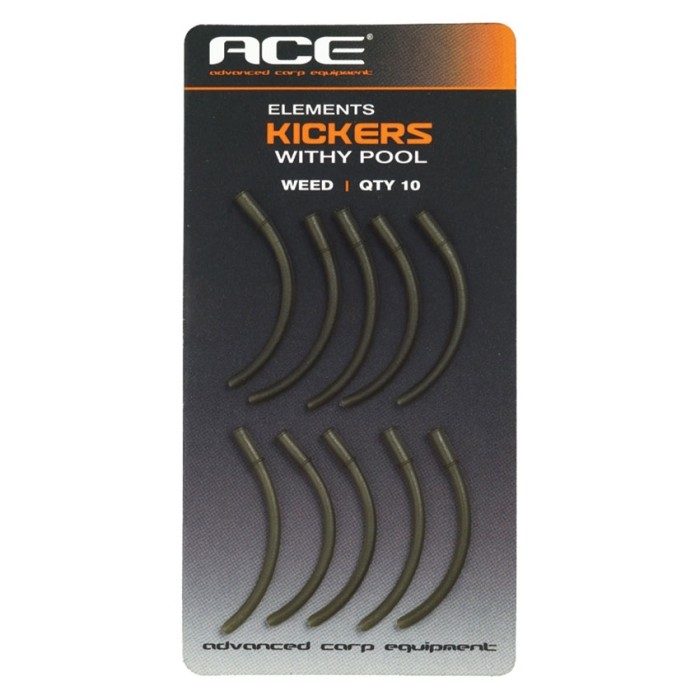 ACE Kickers Withy Pool are pre-formed adaptors that eliminate the need for shrink tubing. Simply slide one onto your hooklink and over the eye of the hook to create the perfect 'Withy Pool' rig without the need for and steaming over a kettle You can use an ACE Kickers Withy Pool for creating advanced pop-up or bottom bait presentations.