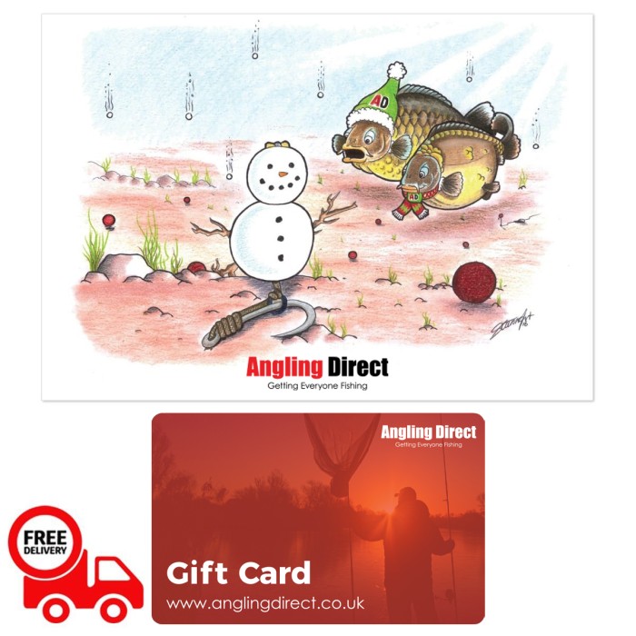 AD Snowman Rig Christmas Gift Card, The AD Gift Cards are redeemable both online and in store! This is the perfect and flexible present for Christmas. Select any value from £10 to £1000, quick and easy to redeem online. Features a smart looking gift card made from quality plastic. The Angling Direct Snowman Rig Christmas card has the space for personal messages. The card features an exclusive StannArt Snowman Pop Up Rig illustration. Paper envelope is included. FREE DELIVERY ON ALL GIFT VOUCHERS PURCHASED ONLINE.