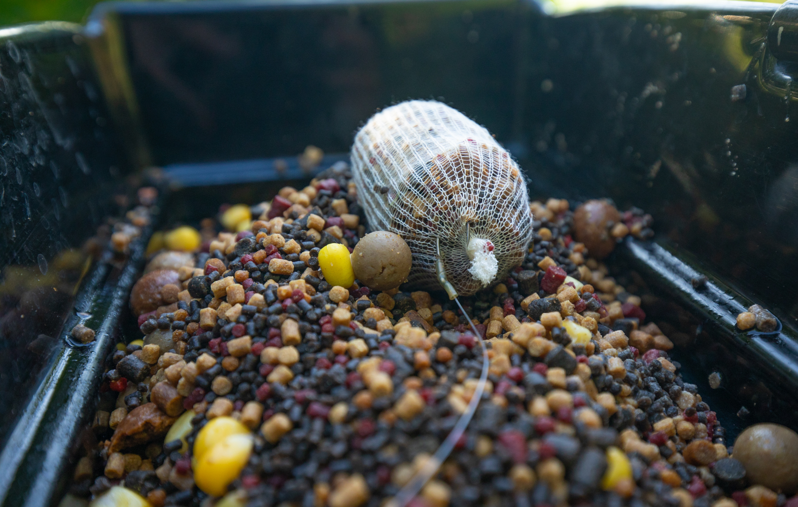 Phil recommends adding a small PVA mesh bag to the rig to ensure a hand full of bait is sitting on top of the hook bait for even more attraction. The mesh system from Advanta makes tying small bags very quick and easy.