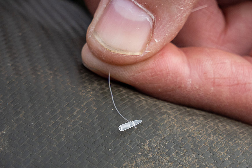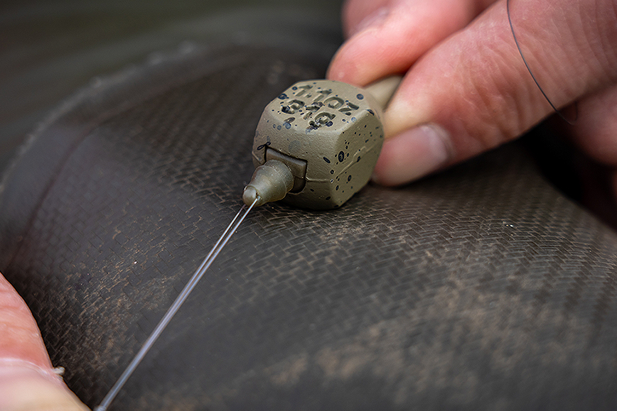 Thread the in-line weight onto the mainline then attach the quick change bead.