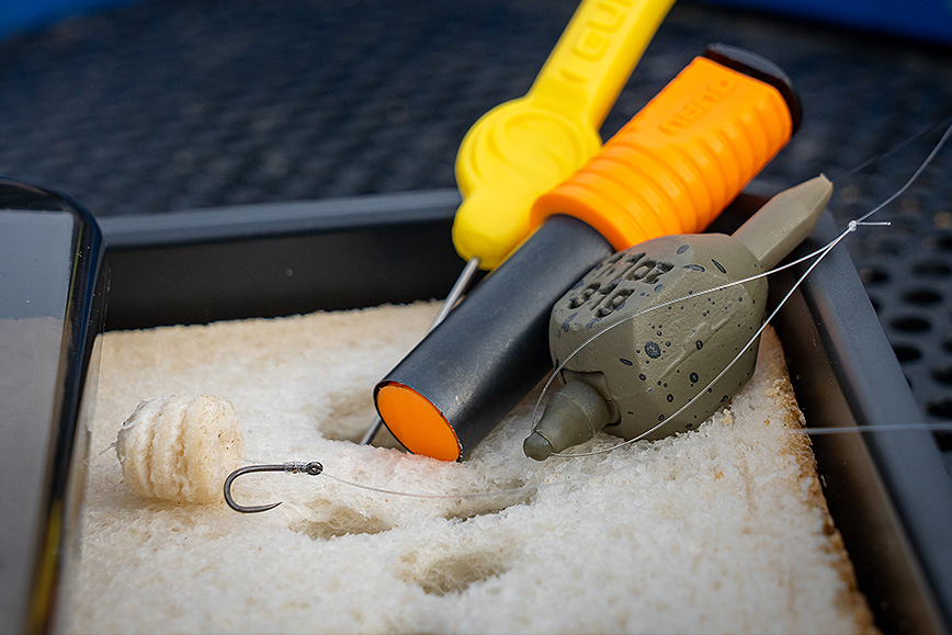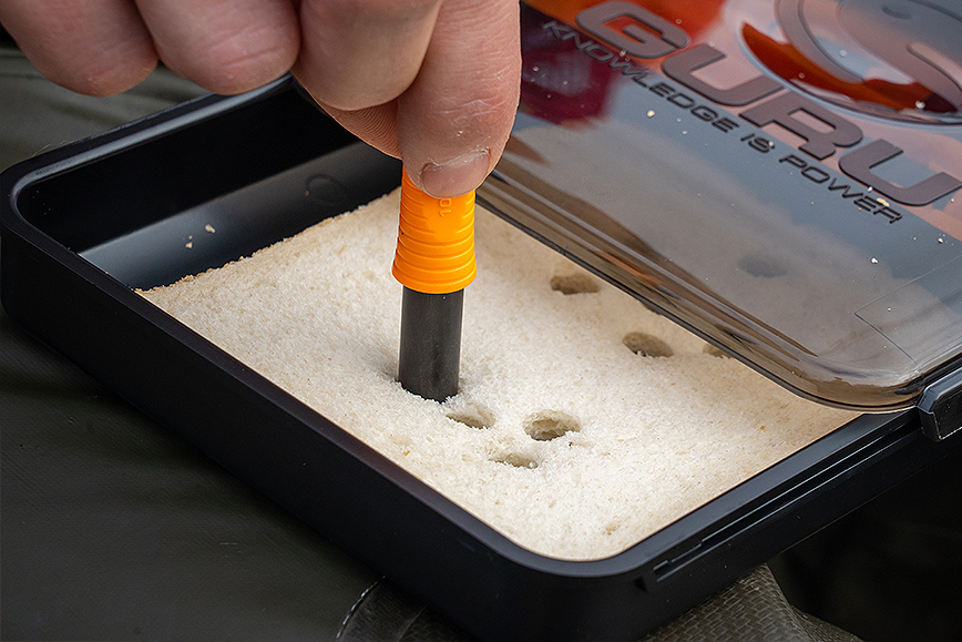 Attach the pieces of bread to the quick stop using the quick stop needle, you are now ready to fish.
