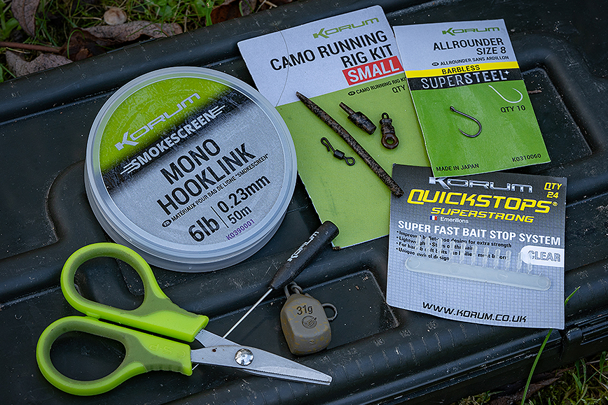Tie a quickstop to approximately 24 inches of the hooklink material then attach the hook using the knottless knot.