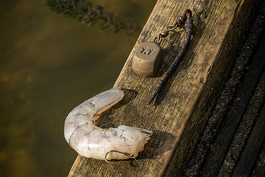 Prawns are a wonderful bait for perch! Their fishy aroma and soft texture make them irresistible and a legered prawn, cast into the right area on a river, lake or canal, will soon be taken. Quite wary of any resistance, big perch should be targeted with a sensitive set-up. Try fishing with a fine quivertip, or with the rod pointing at the leger and the reel’s bail-arm open with a drop-off indicator fitted. Here is the rig to catch them using prawns...