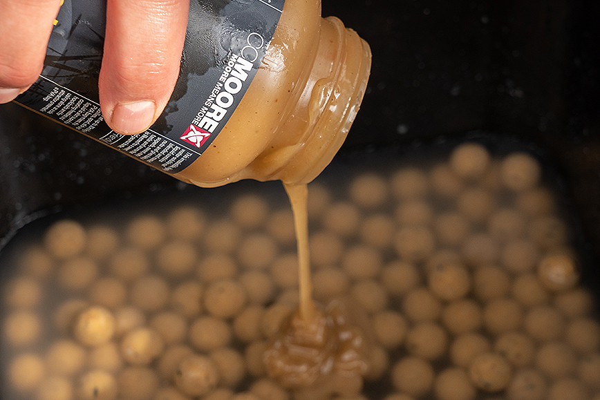 Add a small amount of liquid flavour first, then lightly dust the boilies with your chosen powdered flavour.