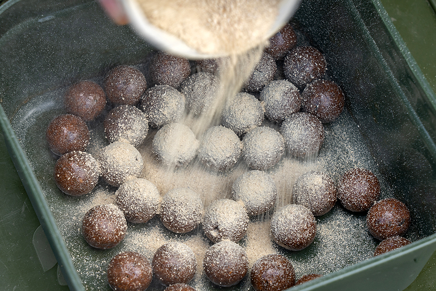 Add your powder to the baits gradually so they have a generous coating, then leave to dry for 24 hours.