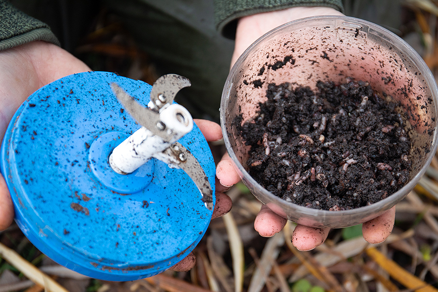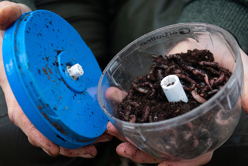 Chop your worms into small sections. Ensure to incorporate plenty of the worm soil, this holds all the natural attraction.