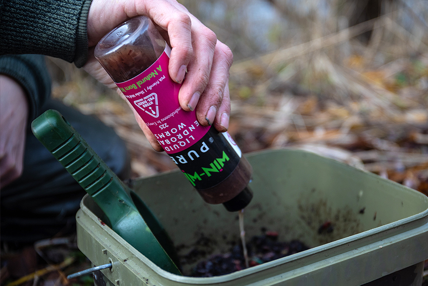 Select your dead maggots. Add a small amount to your mix. Select your worm liquid. Add a good glug to your mix.