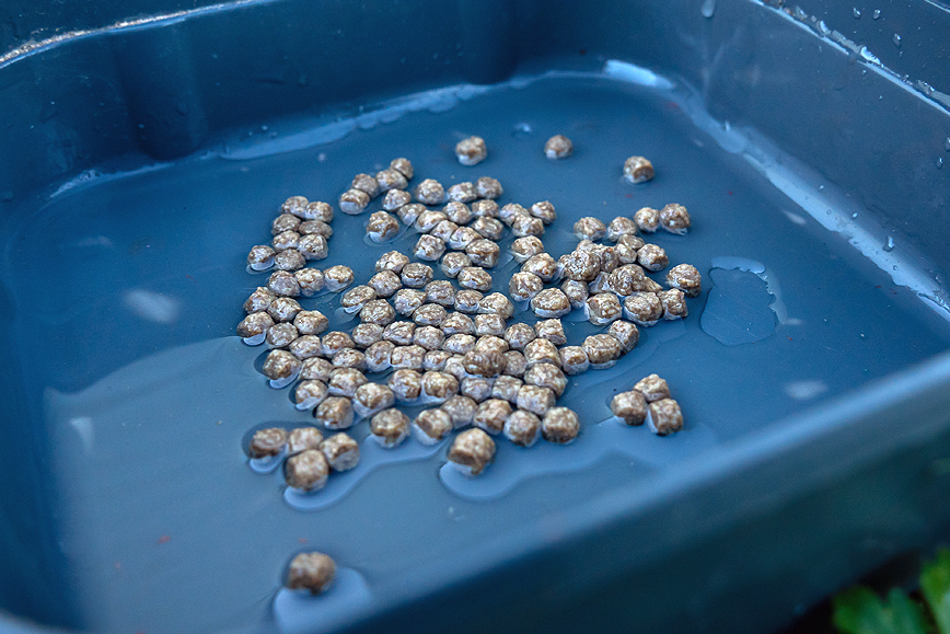 Empty the expanders into a fresh bait box, leave for 20-30 minutes until they are soft.