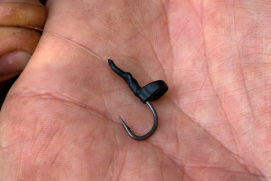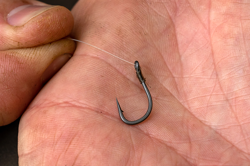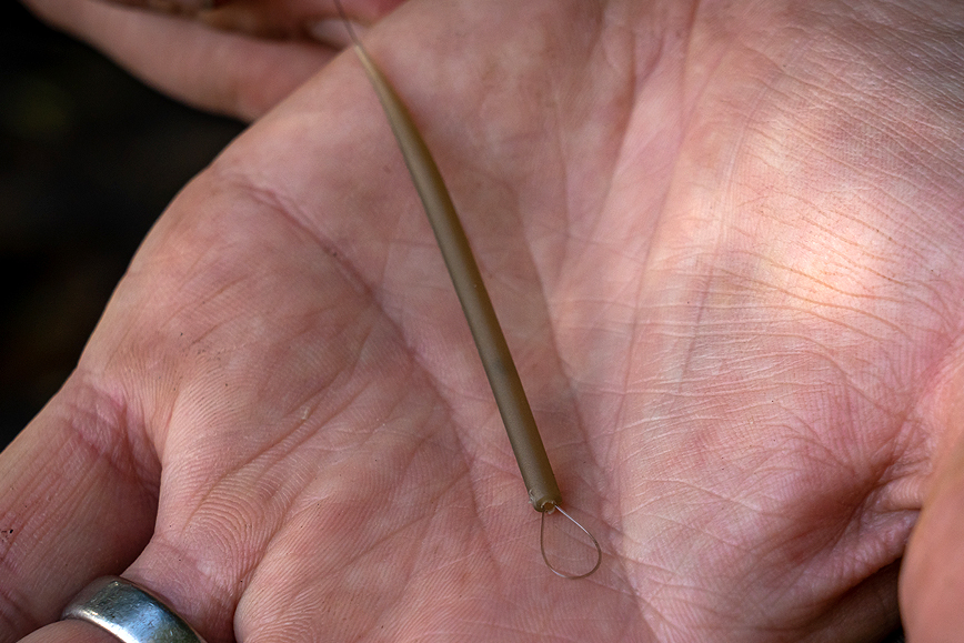 Thread your anti tangle sleeve onto your hook link, then tie a figure of eight loop.