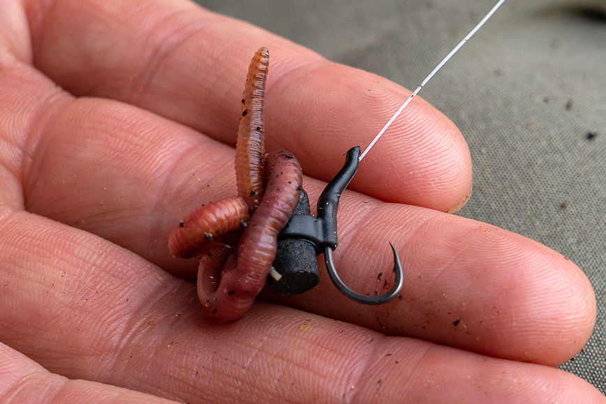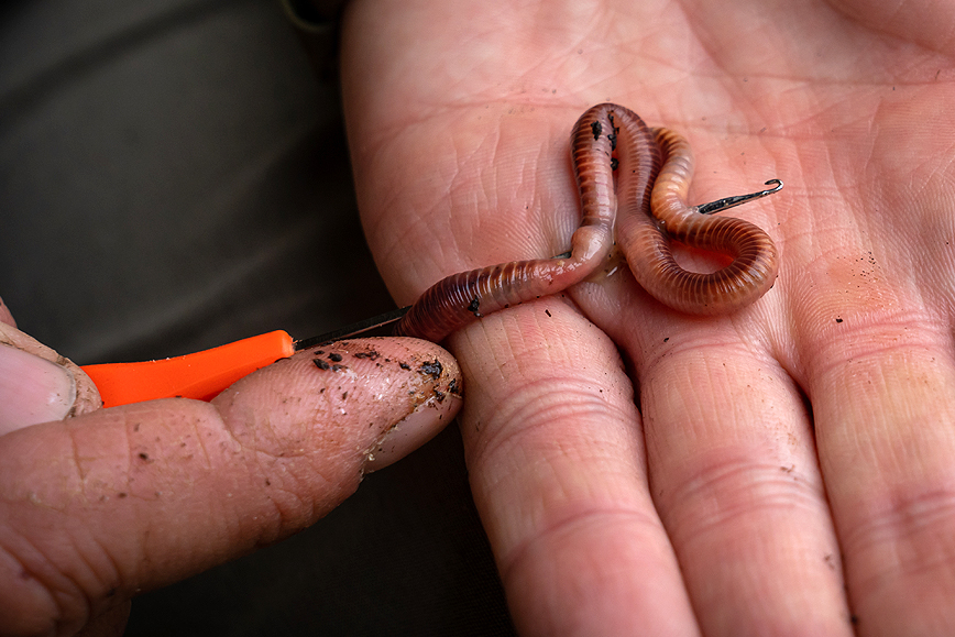 Attach a worm to the needle as shown.