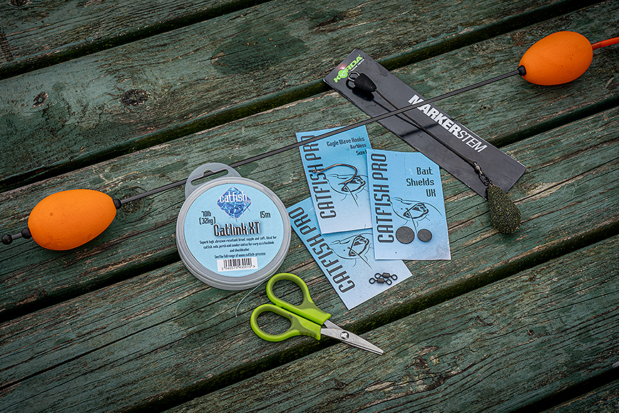 Now tie on a hook link made from the catlink XT, hooks and swivel. This hook link must be shorter than the dumbell float.