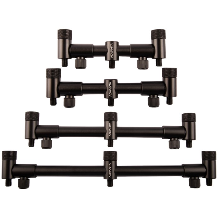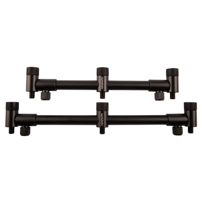 The Advanta range of adjustable aluminium buzz bars offer an affordable and lightweight solution to multiple rod setups. The range features all the popular sizes to enable anglers to customise their setup to suit the peg they are fishing or the size of the rods and reels they are using. The Advanta Adjustable buzz bars are full adjustable to allow for a wider spread of the rods, this allows for a better angle of line when fishing in various spots on the lake or river. The Aluminium buzz bars made from high-grade aluminium tubing, and a durable, black anodised coating. Each head of the buzz bars features a 3/8 BSF thread head to screw your bite alarm or butt rest into. Available in both 2 and 3 rod versions to suit anglers who use multiple rods. The Aluminium buzz bars also feature male screw threads on the bottom to allow them to be used as “goalpost” setup making them exceptionally secure when connected to two bank sticks.