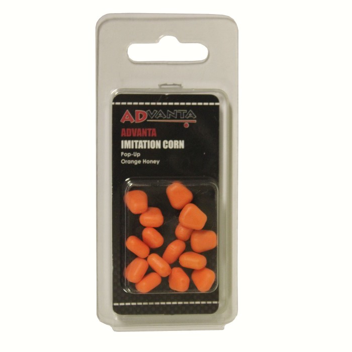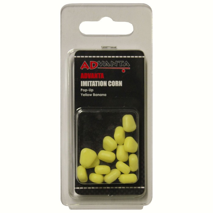 Advanta pop up sweetcorn is a buoyant rubber imitation corn. It is soft enough to be used on the hook, but is best when used on a hair rig along with real grains of corn, of a corresponding colour.