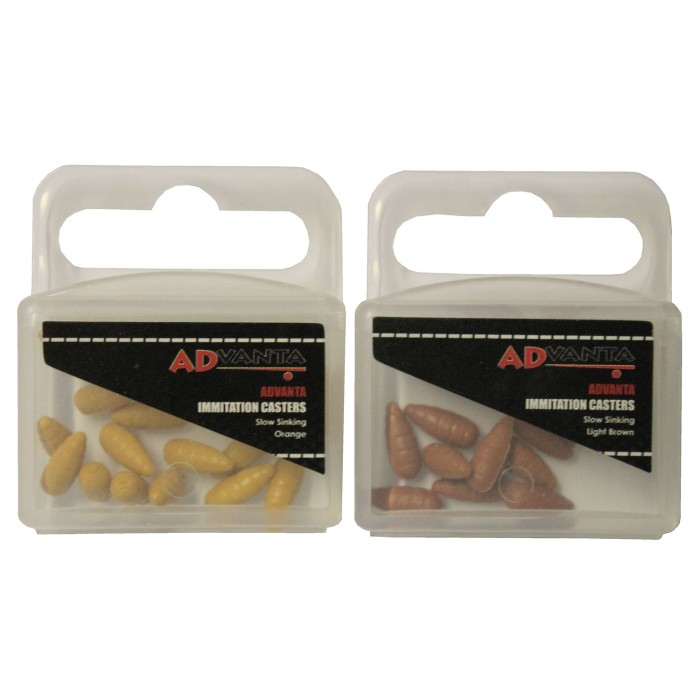 Advanta imitation casters are slow sinking artificial casters that have been developed to sink like a real caster, mimicking free offering bait. Soft yet tough, they can be used either on a hook, hair rig, on their own or in conjunction with real casters. The angler is always guaranteed hook bait.