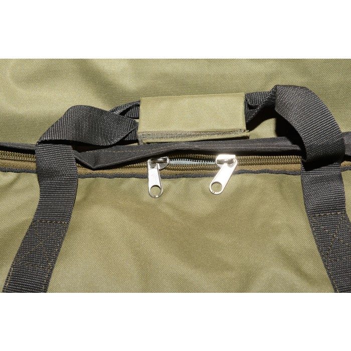 It is incredibly easy to use this Advanta Bedchair Bag. This is thanks to the larger zippered opening, which allows you easy access to the bag at all times. With a double zip, you can open the bag at any point with ease. It extends around the sides of the bag, too, allowing you to fold back the opening and enabling you to comfortably fit in even larger bedchairs. The entire outfit has been finished in a carpy olive green and black colour. This not only ensures that it will be the perfect match for your bedchair but also that it will completely complement the rest of your existing carp fishing luggage.