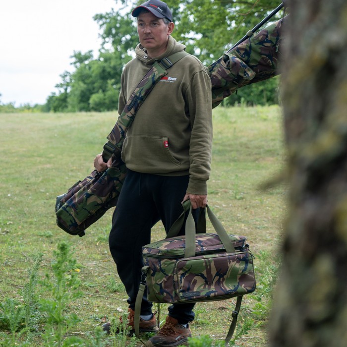 The Advanta Cool Bag - Camo has been designed to house all your food for the fishing trip and to keep things as cool as possible thanks for the thermal lined foil material that has been used to construct the bag. The Advanta cool bag is the prefect size for a few days and nights on the bank and due to its shape can hold a lot of items easily and securely. The Advanta cool bag is made using a lined material that will help to keep your food fresher for longer and can be used in conjunction with freezer blocks to prolong the life of things such as meat and perishable good for much longer for Carp Anglers who stay on the bank for extended periods. The internal material used on the inside of the bag is fully wipe clean for ease if any spillages happen and the outside of the bag features additional storage in the form of a small zipped pocket for items required for food or drink preparation. The Advanta Cool Bagalso features carry handles for easy lifting and a padded and removable shoulder strap for times when you may with to carry the bag to and from your fishing spot.