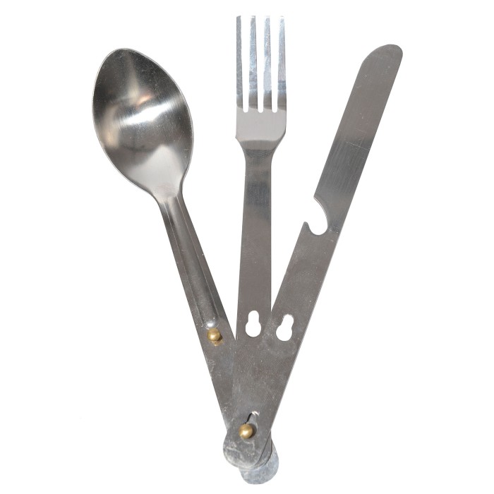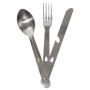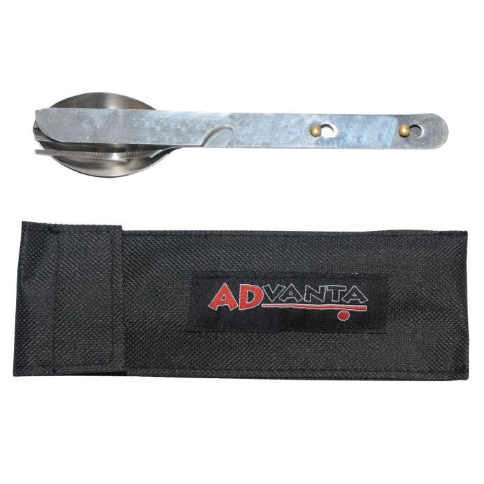 Compact cutlery set which locks together to prevent it coming apart when not in use. Includes 1x knife, fork and spoon. Supplied in a quality storage pouch.