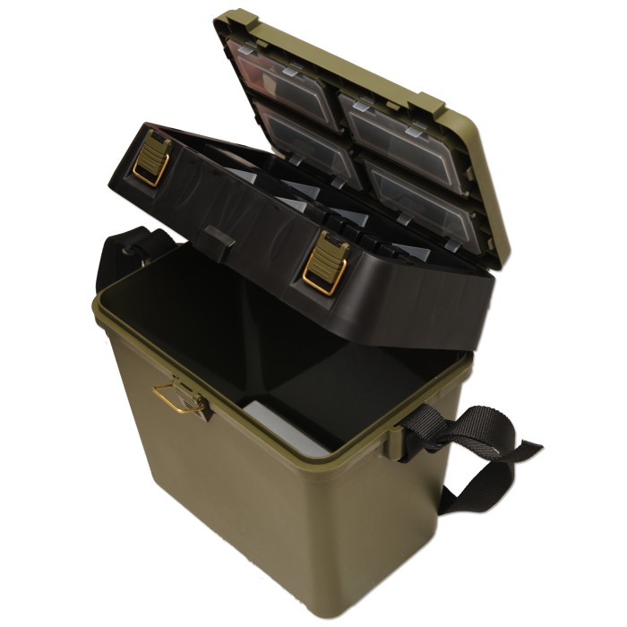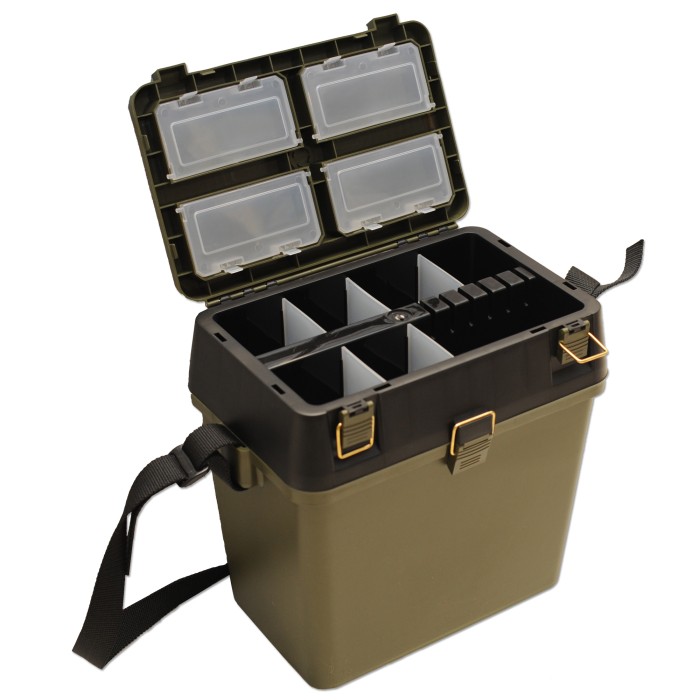 Its carpy green and black finish also ensures that it won’t look out of place on the banks of a freshwater venue either, whether you’ve got it beside your day chair on a carp fishing session or you have it next to your peg when coarse or match fishing. The robust plastic also ensures that this tackle box boasts a good weight-bearing capacity, so it can be used as a seat box in a pinch, or as a perch for an angling companion who is joining you for a bankside brew. Although compact, this box is spacious enough to store a variety of tackle essentials and it has dimensions of 35cm L x 22cm W x 38cm H. This means that you can pack it full with a range of terminal tackle items, bait making accessories, and any spares that you might like to have to hand on the bank. Directly under the lid, you’ll find a shallow tackle box. This comes supplied with its own dividers, so you can choose how to organise your gear. After all, nothing is worse than finding that the compartments of your box aren’t quite large enough to hold the tackle you need, so with these dividers you can ensure that your tackle has a bespoke fit. This smaller tackle box clips directly beneath the lid of the Advanta Lightweight Allround Seat Box, so it is easy to access at all times. Beneath this tackle box is a larger, open compartment. This is ideal for the storage of your larger tackle items, as well as for spare spools, line, clothing, or even your cooking equipment. This, too, is fastened via the use of a durable clip, which has been designed to ensure that it cannot open whilst the box is in transit.