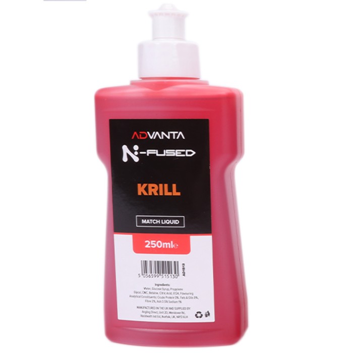 The Advanta N-Fused Match Liquid 250ml feature 4 of the most popular and effective flavors for use when targeting all types of fish from a variety of venues. Perfect for adding to a range of baits including pellets, groundbait and particles to boost their attractiveness to a range of coarse fishing species. The Advanta N-Fused Match Liquid is supplied in a 250ml pop top bottle making is quick and easy to access the liquid when fishing. The Advanta match liquids have lots of uses from coating hook baits to make them super attractive to mixing them into ground bait mixes, the possibilities are endless. Available in 4 popular flavours; Betaine Green; Krill; Pineapple Punch and Sweet Banoffee F1. Each of the 4 Flavors within the range of N-fused match liquids has a corresponding colour and can be used on baits such as meat, pellets, and bread to not only change the flavour of them but also the colour. This can be a real edge when fishing in a match situation allowing the fish to home in on the bait that stands out.