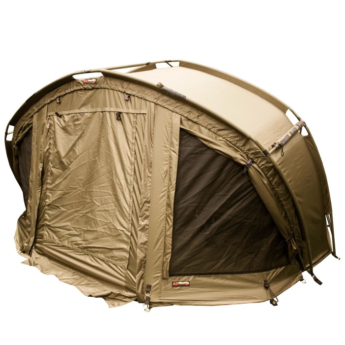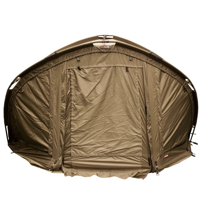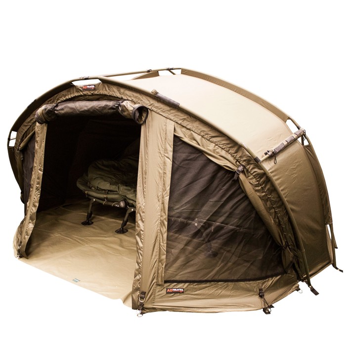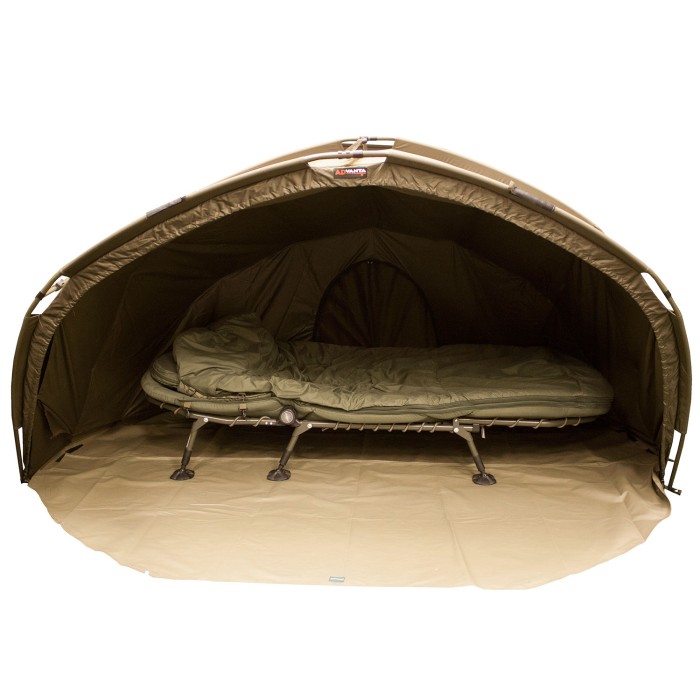 With its new 210D breathable, waterproof material and its lightweight aluminium frame, the Advanta bivvy weighs only 10kg. It comes supplied with adjustable aluminium tension bars for total stability and can be converted to an open fronted shelter with its removable front panel.