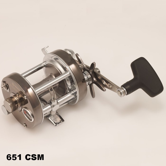 The S-line 651 CSM is the entire above but with the added feature of an adjustable magnetic braking system adjustable by a chrome knobby on the left side plate and can be adjusted before or during the cast and appeals to those who still prefer to have a level wind.