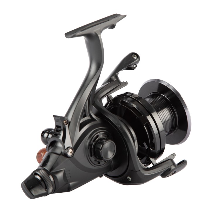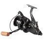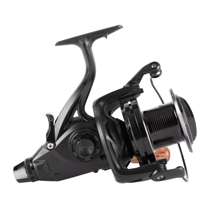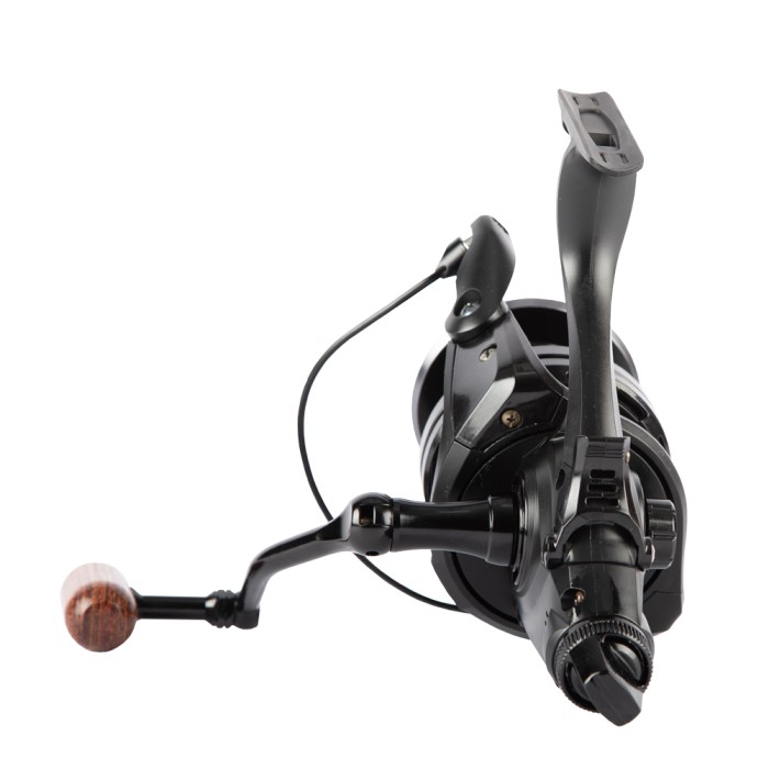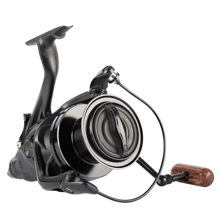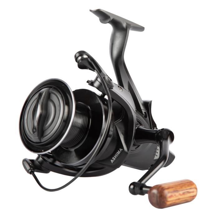 Ashima FFX-XL free runner reel is the new Big Pit from Ashima. With a line capacity of 400 m / 0.35 mm, this reel can be used for multi-purposes. The reel is supplied with a black aluminium spool with gun smoke details and has a matte black body. The handle is equipped with a wooden handle. The ratio of the FFX-XL is 4.6: 1.