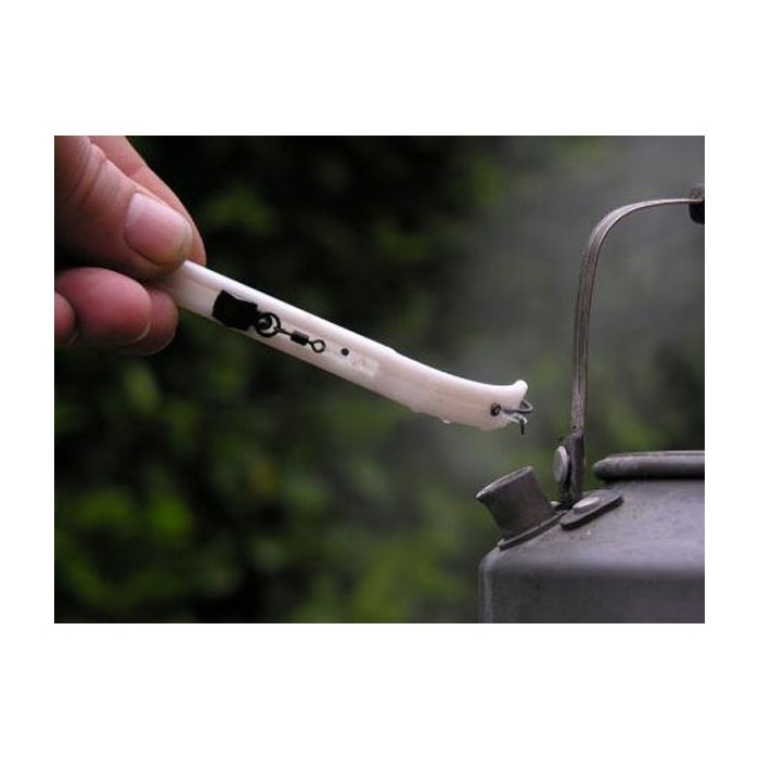 Atomic Tackle Chodda Tool, The Chod Tool has been designed to make it as easy as possible to create the curve in the hooklink without having to sit and manipulate the stiff material between finger and thumb. Some of the chod hooklink materials are easier than others to manipulate into the required curve, but some anglers still find it difficult to get everything perfect. The Chod Tool is in essence a J shaped tool with a small slider fitted to the handle. The upper curved section of the tool has a groove running along it up to the start of the slider rail. Using the Chod Tool is simplicity itself. You take your constructed chod rig and place the hook over the end of the curved section. Making sure that the hooklink material runs along the groove, place the ring of the swivel onto the peg on the slider and slide down to tension the hooklink. Put the kettle on and once the kettle starts to boil, hold the chod tool & rig over the steam to heat the hooklink up. After 10 seconds or so, remove the tool from the steam and leave to cool for a couple of minutes (or you could dip the tool & hooklink into cold water) so the hooklink material stabilises. Remove the hooklink by releasing the tension on the slider and your chod rig hooklink has a curve placed in to it that will turn effectively in the fish's mouth. It is as easy as that!