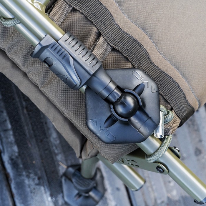 Features of the bedchair include a unique leg adjustment mechanism and extra large mud feet, offering you unrivalled stability whilst on the bank, the heavy duty throw hinge on all legs also lends itself to increased stability.