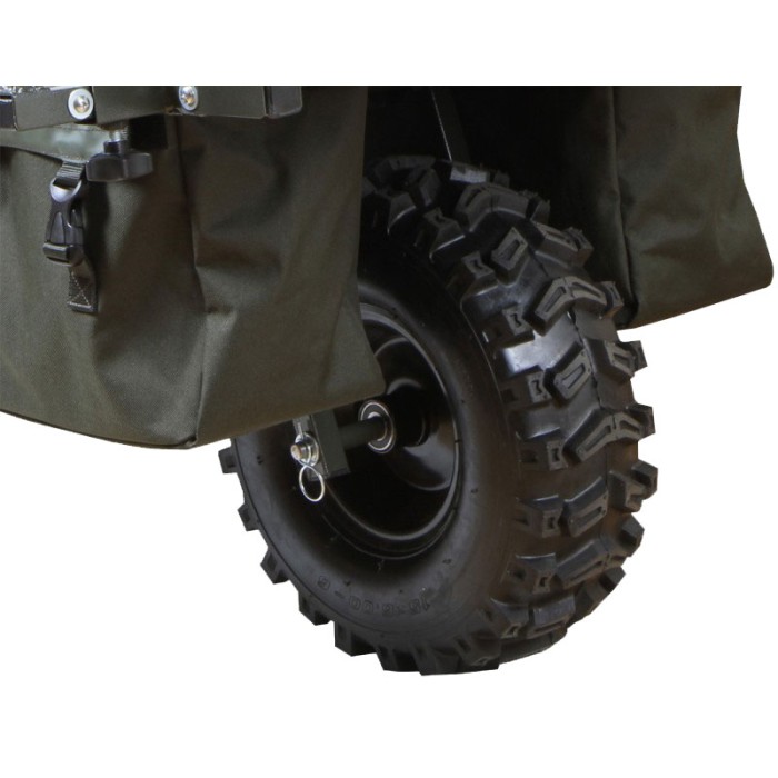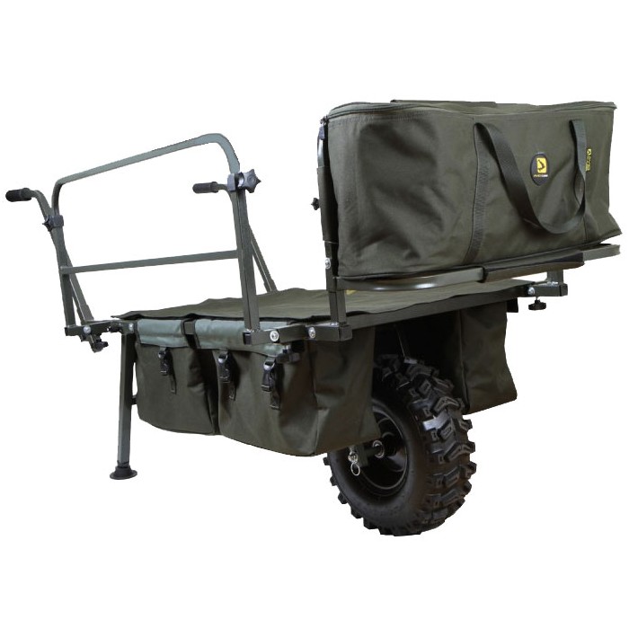 The Transit X boasts shorter legs to improve ground clearance and a chunky all-terrain tyre. It has a large central pocket that perfectly accommodates the Transit 2 bag, and two pockets either side of the wheel that allow you distribute the weight better across the front of the barrow.