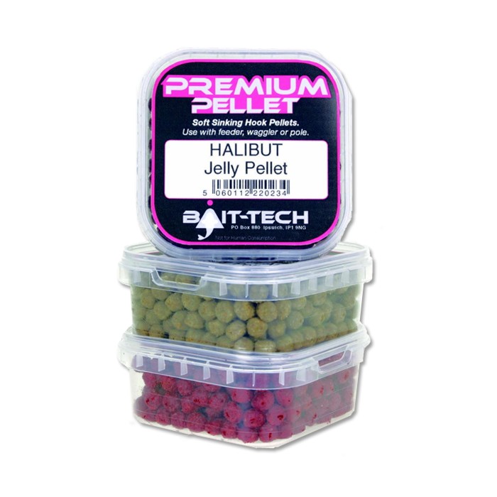 Bait-Tech 'Premium Pellet' Jelly Pellets are available in Halibut, Strawberry and Fishmeal flavours.