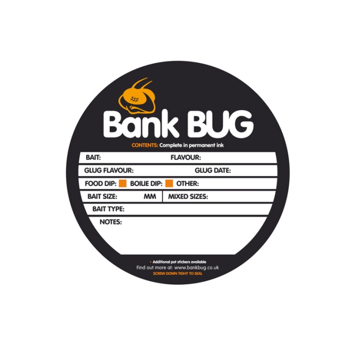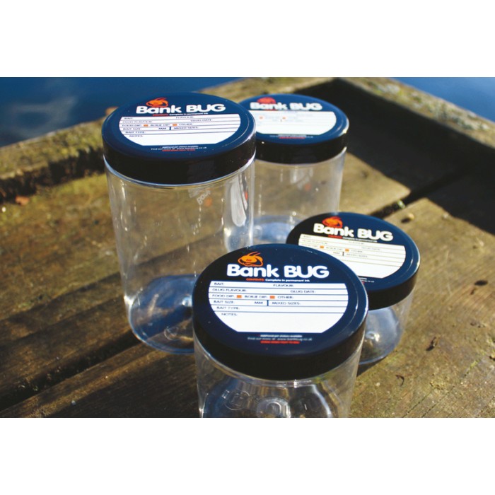 Bank BUG plastic pots are the ultimate storage solution for your bait. Ideal for pop ups, glugged boilies, artificials or freshly rolled baits on the bank or at home . . . . the list is endless. After extensive field testing many different types of pot, our's are the best money can buy. So, how do you dress up a plastic pot? For us, this was a simple but innovative idea, all other glug pots on the market dont give you the option to write the contents of that specific pot, now you can! Our market research told us, 91% of anglers who had previously glugged baits, could not remember the date it was glugged, or if the baits were pop-ups, hard hook baits, wafters etc., most of them could not even remember if the pot contained a boilie dip, food dip or flavoured oil. This is now a thing of the past! Our storage pots also save you money; how many times have you purchased a particular pot of bait with a matching glug and simply covered all the contents with the liquid?