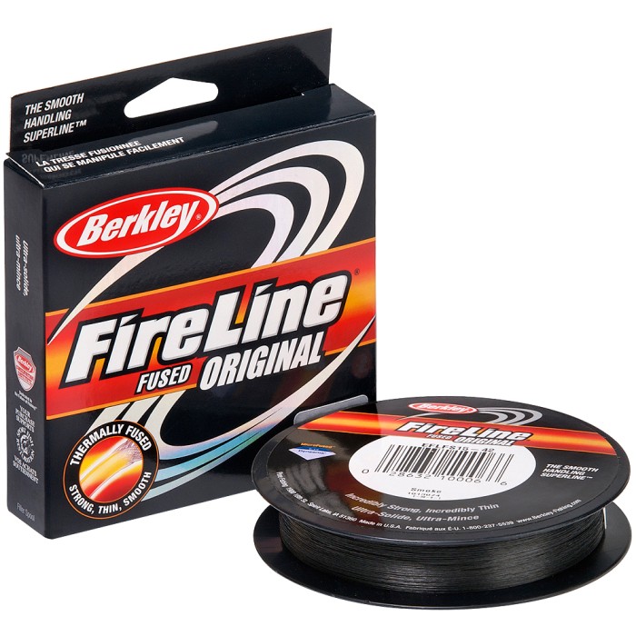 Available in a smoke colour, the Berkley Fireline Braid is available in a variety of lengths and weights limits: 125yds with 10lb weight, 125yds with 14lbs weight, 125yds with 20lb Weight, and 300ydswith 14lbs weight.