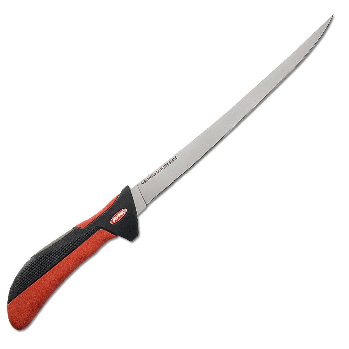 The 9inch Berkley Standard Flex Filleting Knife features an ergonomically designed handle for comfortably effective use. Its performance as a cutting tool is greatly enhanced by a special process which keeps the stainless steel blade inherently keener for longer, so sharpening the blade in the normal course of things makes no difference to the steels improved properties. Naturally, Berkley Standard Flex Filleting Knives are supplied in a sheath - along with a 600 grit sharpener. Remember...these are seriously sharp knives that will make very short work of de-boning.