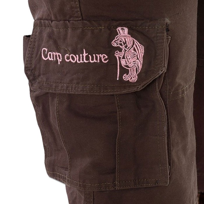 The Carp Couture Ladies Combat Shorts have been designed with comfort and safety in mind. The Combat Shorts have a tie at the bottom of the leg to stop the bottom of the Combats getting caught on twigs and branches when we climb trees to seek out the carp. They also have an internal belt for comfort, 6 large pockets and are made from 100% cotton. (Due to the cut and style of Carp Couture clothing we recommend buying a size up for extra comfort).