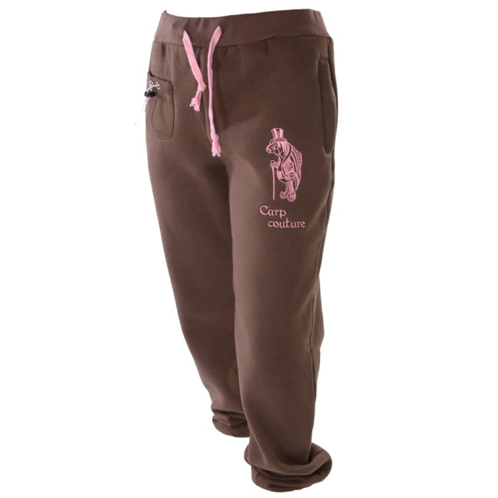 The Carp Couture Jogging Bottoms have extra long ankle cuffs which make putting on boots as easy as possible without worrying about the trousers riding up, as well as giving additional comfort. The pockets on the trousers are zipped which means that loose change or keys will not fall out inside your sleeping bag. (Due to the cut and style of Carp Couture clothing we recommend buying a size up for extra comfort).