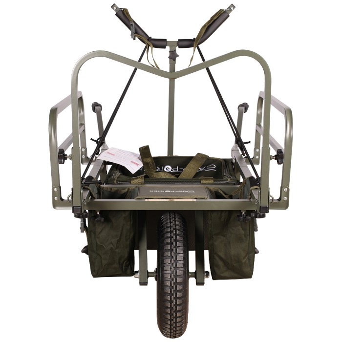Featuring a compact fold-down design, the MK2 Navigator Barrow can fit into the smallest of car boots, whilst still leaving you bundles of space to store all your essential carp fishing gear. This design has been implemented without sacrificing any of the barrow’s ability to hold tackle and the fully extended Navigator has the same dimensions as the original MK2 (88cm W x 110cm L). In fact, the Carp Porter team have further improved the barrow’s capacity! An exclusive zip-top removable barrow bag complements the dual bungee cord and twin panniers to ensure that you have ample storage space for all of your gear – no matter how big or small. You can have full weight bearing confidence with the Carp Porter MK2 Navigator, even when loading the barrow to its maximum capacity, thanks to its upgraded precision bearings, too.