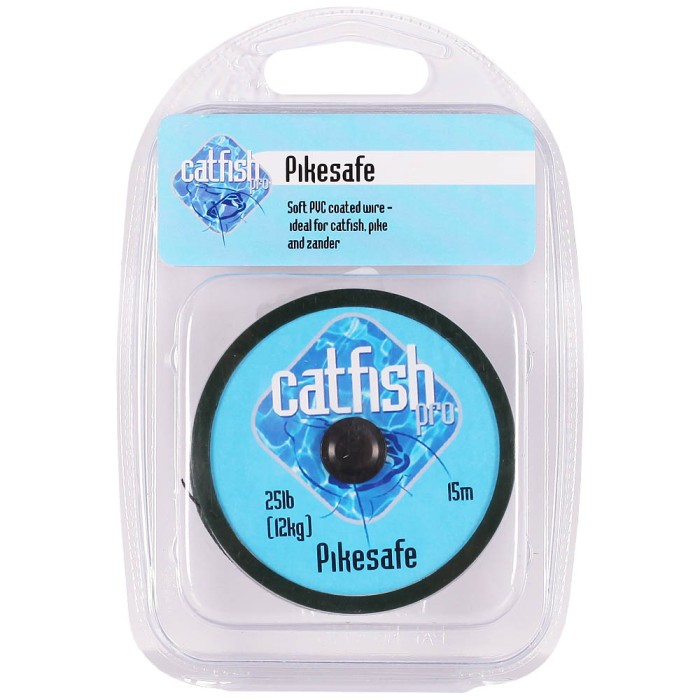 This is a brilliant very soft and supple PVC coated wire. Pike safe is ideal for Catfish hooklinks if you are fishing a water with a very high Pike population or at a venue where fishery rules dictate the use of wire traces with live baits. Being very easy to make traces simply twist the wire and heat with a lighter to seal or you can even Knot it. Also ideal for Pike and Zander fishing where you want a soft wire. Pike safe is rated at 25lb strain and is available in 15 meter spools.