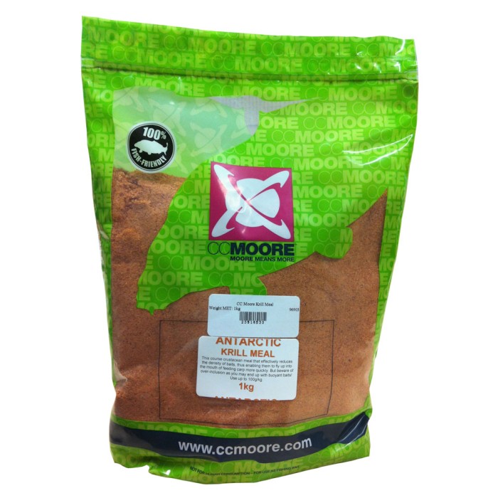 Krill Meal is a very light ingredient and effectively reduces the density of baits, thus enabling them to fly up into the mouth of feeding carp more quickly. But beware of over-inclusion as you may end up with buoyant baits!