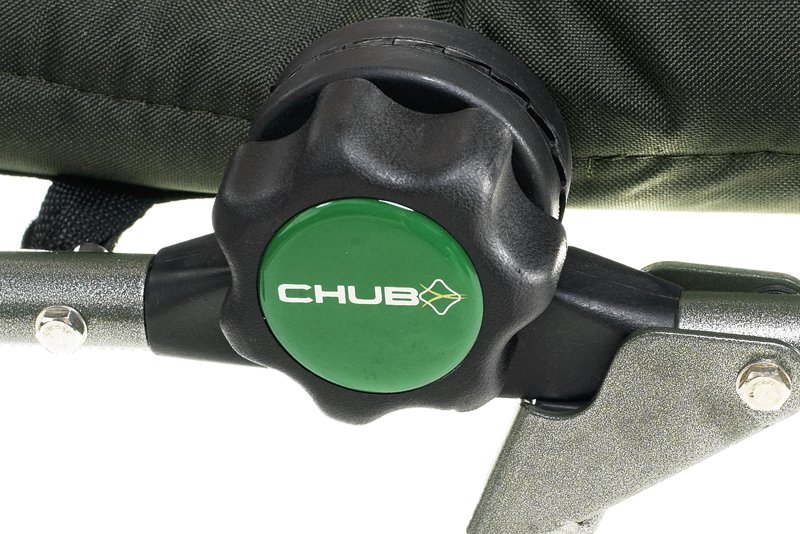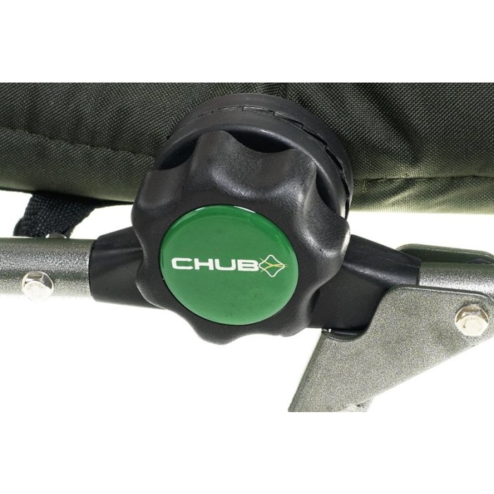 The frame of Chub Cloud 9 standard bedchair is constructed from an extremely tough and stable lightweight aluminium box section. Each leg individually adjustable with positive push and lock mechanisms and swivelling mudfeet.