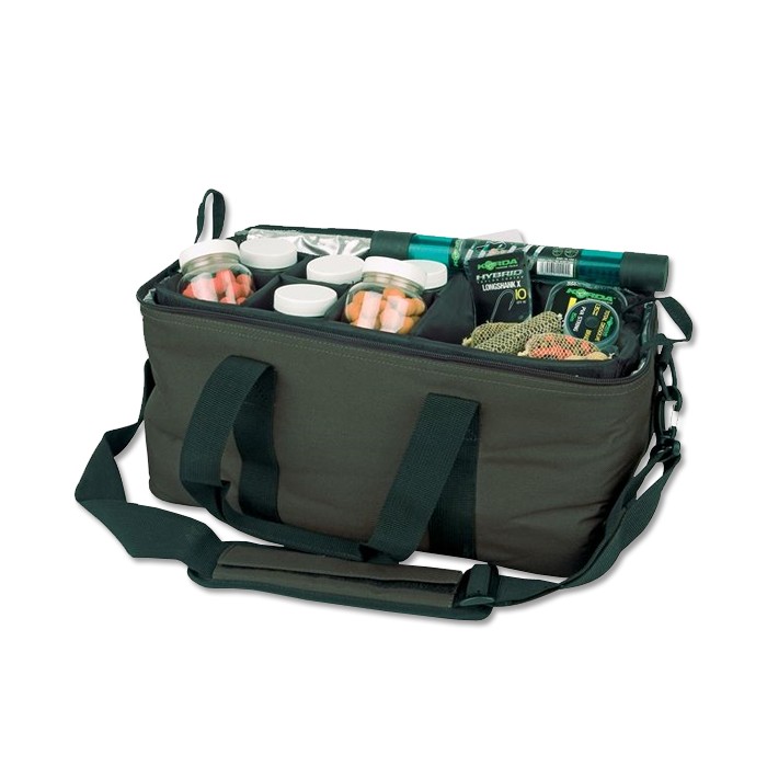 A large bait bag featuring a fully insulated coolstyle metallic liner, designed to keep bait in perfect condition. The easy clean, removable hookbait tray will hold six dip / pop-up containers and accessories.