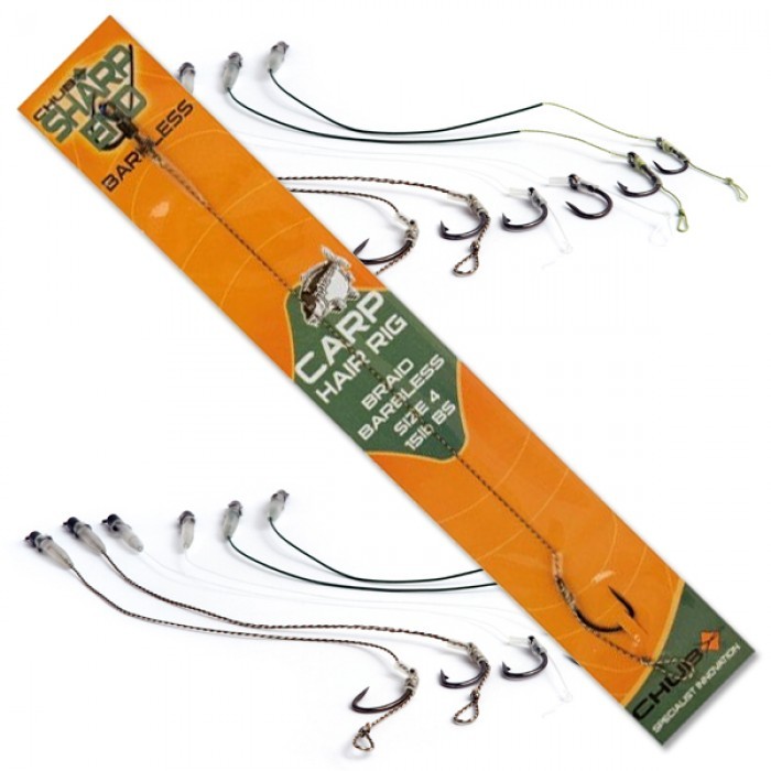 Chub Mono Hair Rigs, Professionally hand-tied to the highest standard the Chub range of rigs are all top fish-catchers. Manufactured from highest quality materials including Japanese hooks which are ultra strong and wickedly sharp. All hooklink materials are thoroughly tried and tested. The rigs are neatly finished with the addition of clear shrink sleeving and clear tapered swivel sleeves. Each rig is tied to perfection and even the most competent of anglers would be happy.