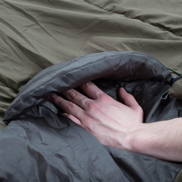 A sleeping bag designed for the mobile carp angler with the Konnect-3 attachment system for freedom of movement. High quality silicone treated hollow fibre fill. Oversized No.10 coil crash zips. Large internal zip baffles and slide guides. Konnect-3 attachment system for increased warmth and freedom of movement. 3/4 Length zips for Hot-Foot box. 190T Ripstop Outer material. Smooth polyester lined base for easy movement. Fleece lined upper for increased heat retention. Internal hand warmer pockets for wrap-around comfort. removable wipe clean heavy-duty foot protector. Unique Hot-Foot drawstring. Full compression bag. Compatible with Chub Vantage Thermal bed cover and Waterproof bed cover. Dimensions: 215cm L x 86cm W.