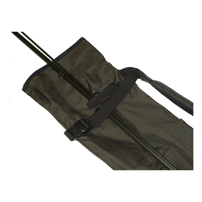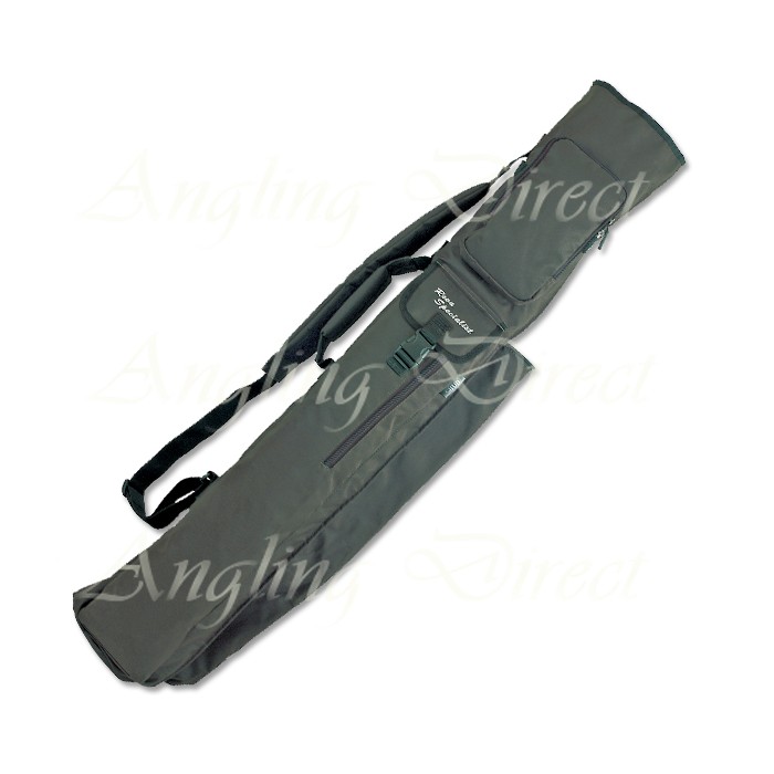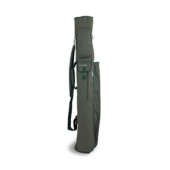 Chub Rova Specialist Quiver has a landing net pocket and padded accessory pouch. Fitted inside the main compartment is a landing net handle retaining loop. This compartment will also accommodate two rod tubes.