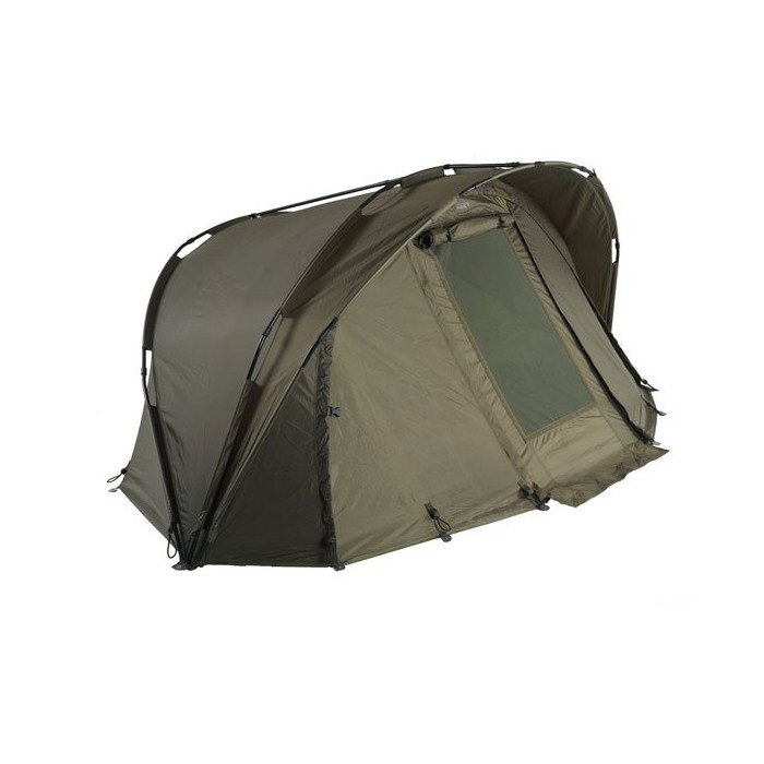The frame is manufactured from 5 section 6061 pre-formed aluminium tube, which makes it quick and easy to erect. Supplied with a complete set of in-line tension bars, T-pegs and shock corded pegging points the bivvy is very stable even in strong and gusty winds.