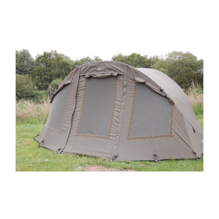 Enhance the performance of the Chub Vizor bivvy with its matching Extreme Canopy, designed to give you even more room and to offer added protection in extreme conditions. Manufactured from Chubs exclusive Climatex (10,000 mm Hydrostatic head) breathable fabric the Extreme canopy virtually eliminates condensation during changeable weather conditions. The versatile door system is fully removable and is complete with clear and mozi window options. Both the door and side windows utilise Chubs exclusive green mesh mozi- panels.