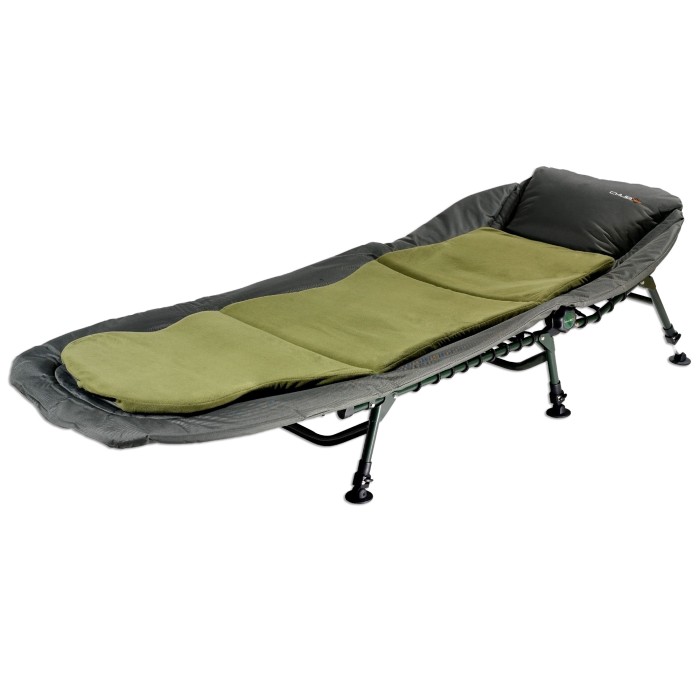 The bedchair is manufactured from lightweight hi-tensile coated steel and features a hard-wearing and well padded cover which is fully skirted and topped off with a full fleece mattress for total comfort.