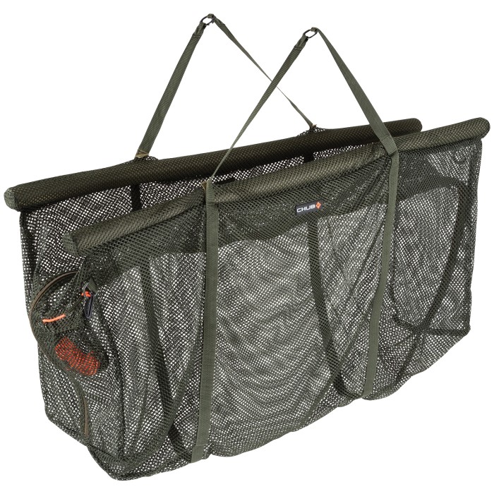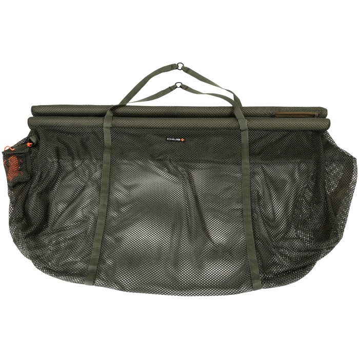 A perfect combination between a floatation sling and a zip sack in one product. Ideal for retaining a fish for a short or long period. Easy to switch for multiple use of the product. Remove floatation bars to switch to zip sack. Anti-corrosion button to open material to remove bars. Four carry handles. 5mtr retaining cord. High visual marker float included. Manufactured from our Eazi-Flow green mesh. Supplied with a bag. Dimensions: 125cm L x 50cm W x 65cm H.